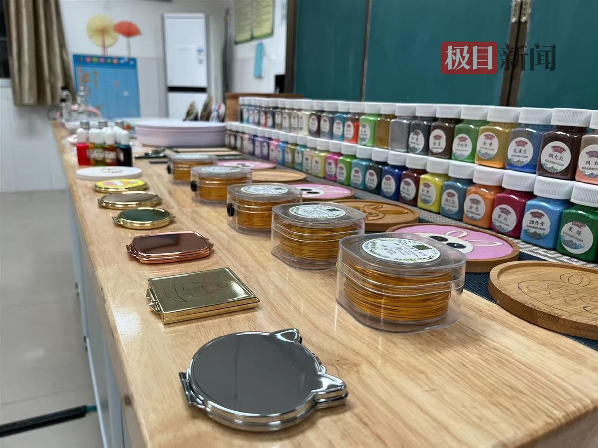 大花岭小学为掐丝珐琅画社团设置了作品墙