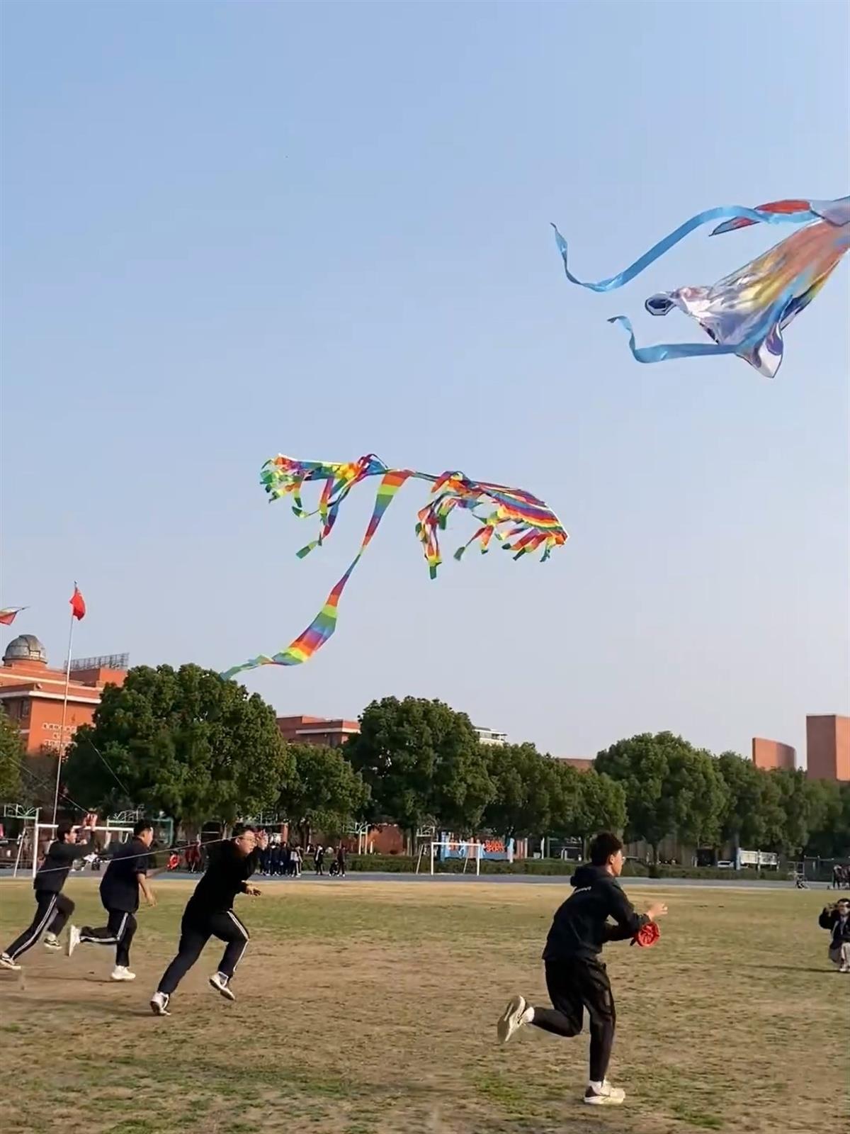郑老师此举也得到了海亮实验中学校方的支持。该校相关负责人谢女士介绍,学校校训是“博观天下 雅韵海实”,学校秉持“博雅·健行”的育人目标,致力于培养创新英才。争取实现让教师具有幸福感、让学生全面发展的效果。谢女士告诉记者,她提前得知了郑老师带学生们放风筝的想法,便找同事录下视频。