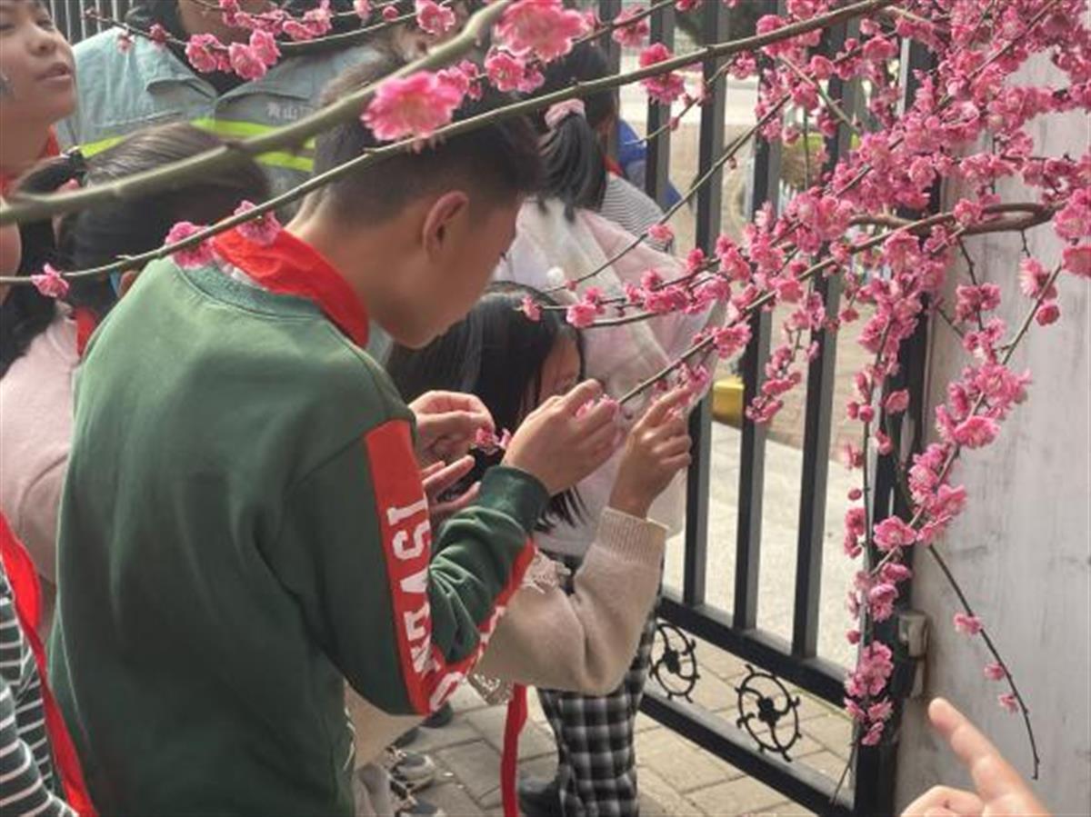 除了赏梅,大家发现小草发芽了,樱花树也有花骨朵了,连铁树都长嫩芽了……在李老师的引导下,同学轮流作了一篇口头小作文,讲述他们眼中的春天。