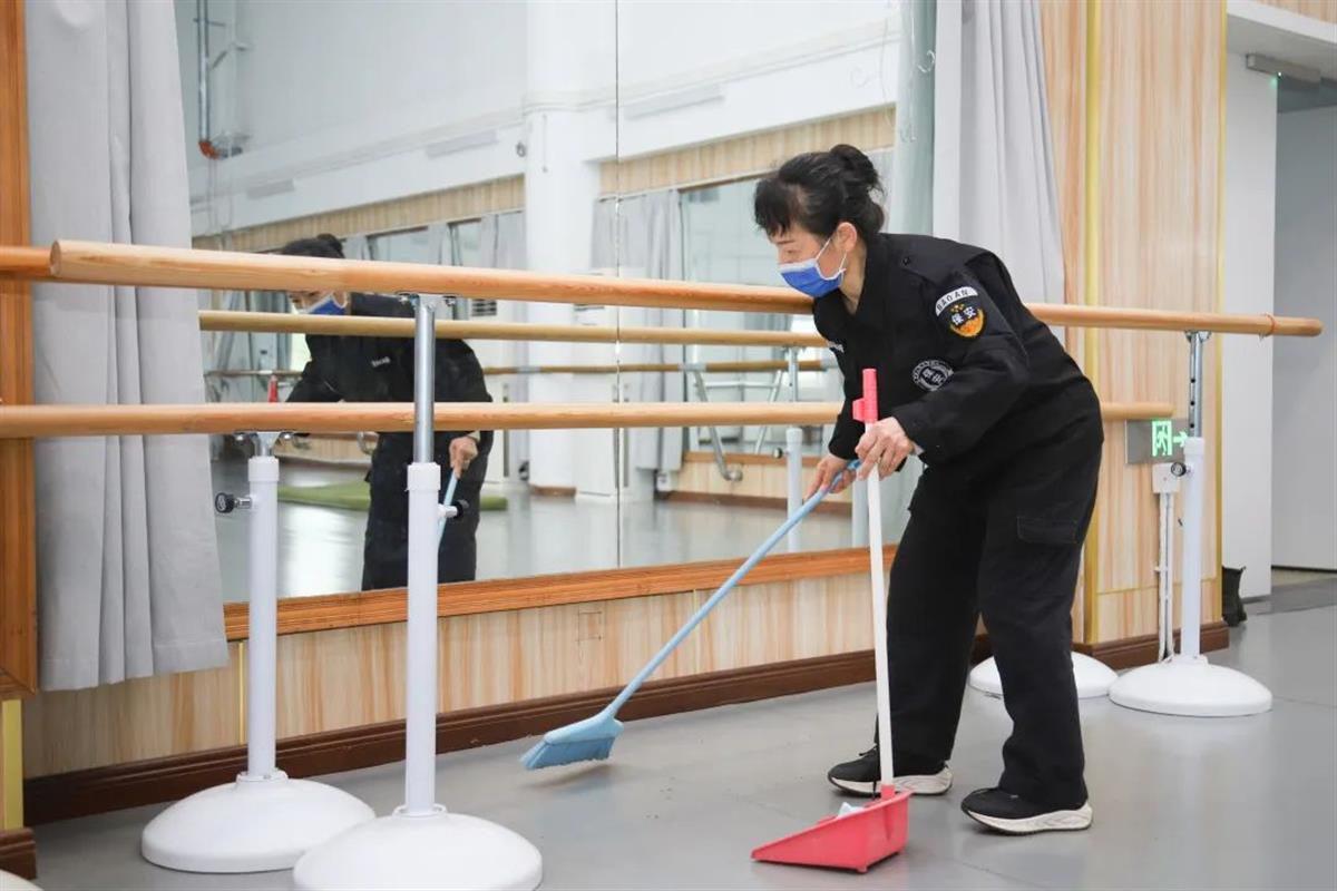 2022年寒假,袁素琴仍然在岗位上坚守。值班的时候,她把这楼里所有的教室拖了一遍又一遍;学生们因提前返乡而匆忙离校,她就把来不及带走而留在舞蹈房里的衣服鞋袜全部带回家,洗干净、叠整齐,再放回教室;把舞蹈房破损的垫子一个一个地亲手缝好。音乐学院里的一草一木,即使再普通,在袁素琴眼中都如宝贝一般。