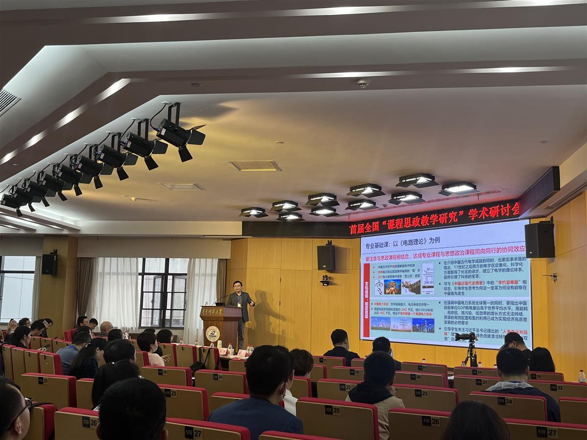 华中科技大学电气与电子工程学院杨勇教授以《新工科背景下专业课程思政建设与实践》做分享。他以专业基础课《电路理论》为例进行分享,这是门课程面向该校近一半的本科生开设。目前,杨勇和团队教师在教授《电路理论》课程时,形成覆盖课程全部章节、具有时代特征和人文情怀的思政示范案例素材库。如在绪论章节,杨勇就谈向学生介绍中国古代对电的然后早于欧洲。“西周就已经出现加雨字偏旁的“電”字,汉代高大建筑物中建有“雷公柱”避雷。这些可以增强学生的文化自信,和对专业的认识了解。”杨勇说。