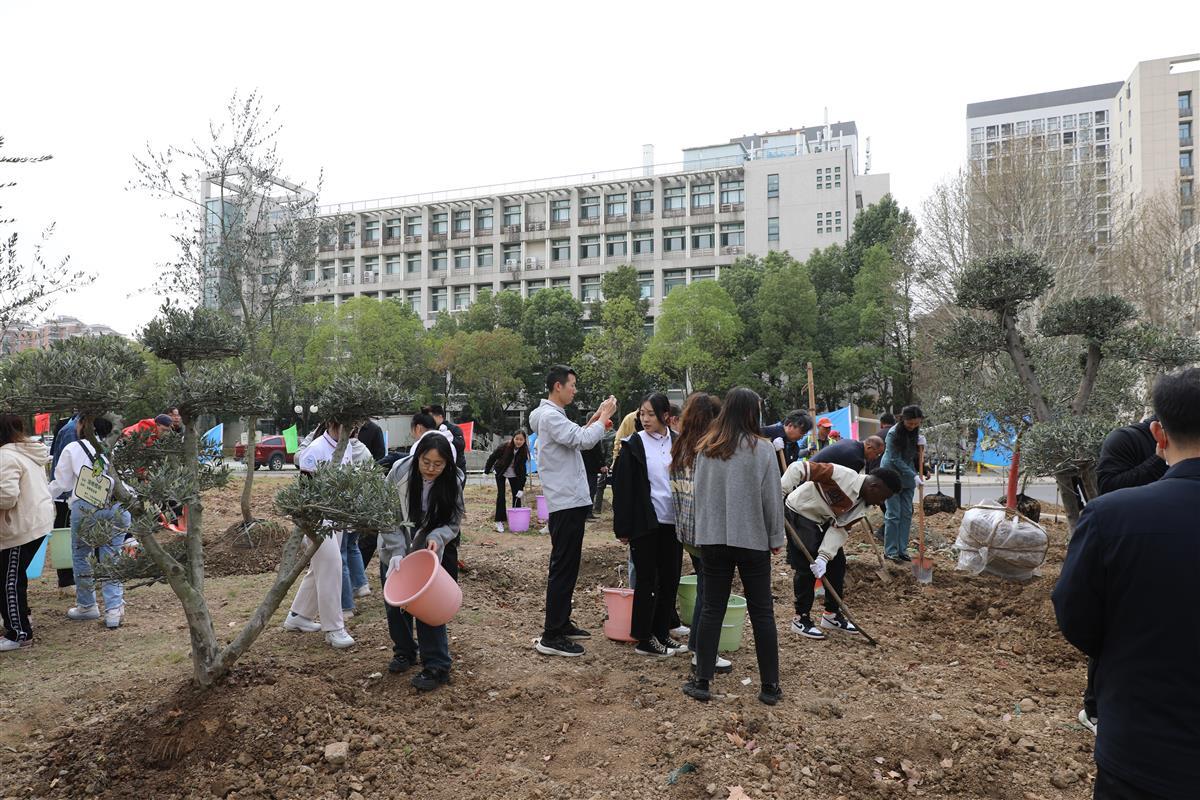 春日晴好,清风徐来,彩旗飘飘。在武汉轻工大学油脂博物馆南侧的油料文化园,一棵棵待种植的植株及挖好的树坑,已准备就绪。学校相关负责人和师生代表拿起铁锹,扶苗、培土、踩实、浇水……大家热火朝天、干劲十足。不多时,一棵棵油橄榄树、云南深纹核桃树等树,便傲然挺立于园中,为校园增添了几分青绿。