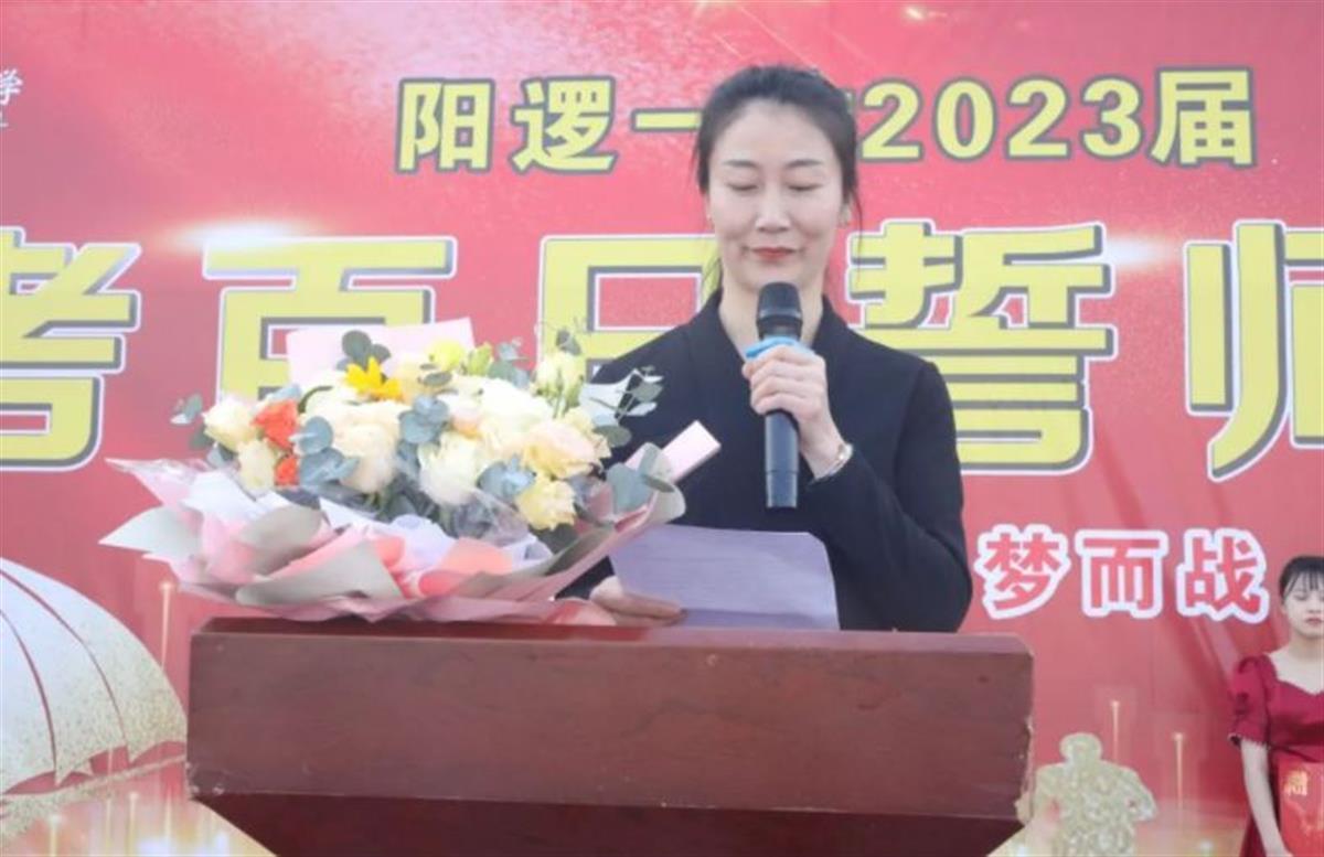 “无论何时何地,家长们都会是大家最坚实的后盾,希望学子们带着家长的期盼去策马踏新程,一展凌云志吧!”常新雅同学的母亲代表学生家长致辞,她用深情的话语回忆了孩子的成长历程,感谢学校的辛勤培养,更鼓励学生励志百日冲刺。