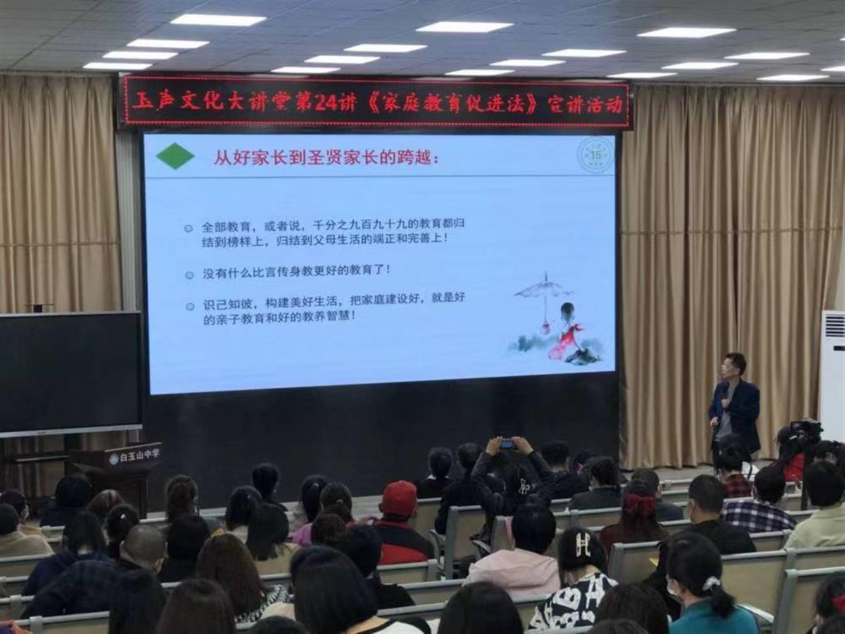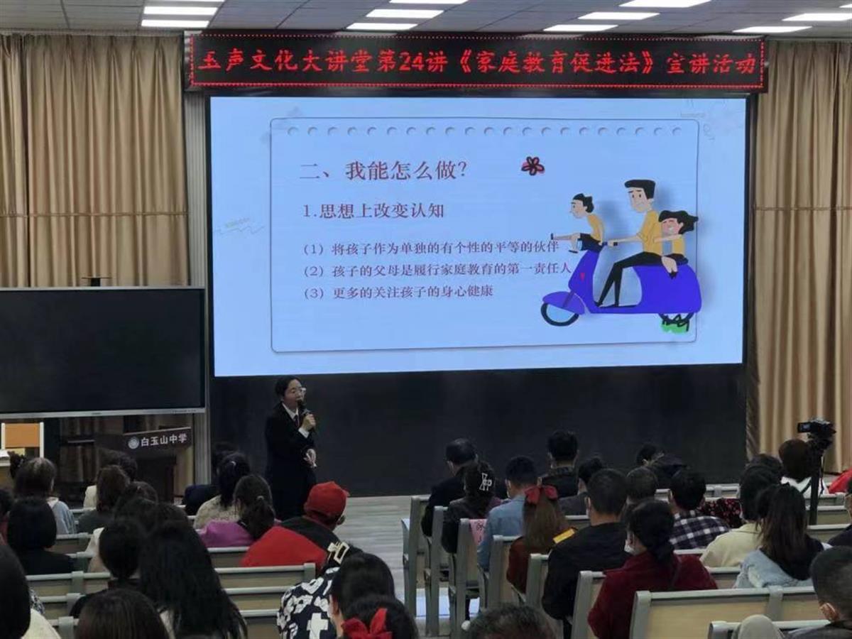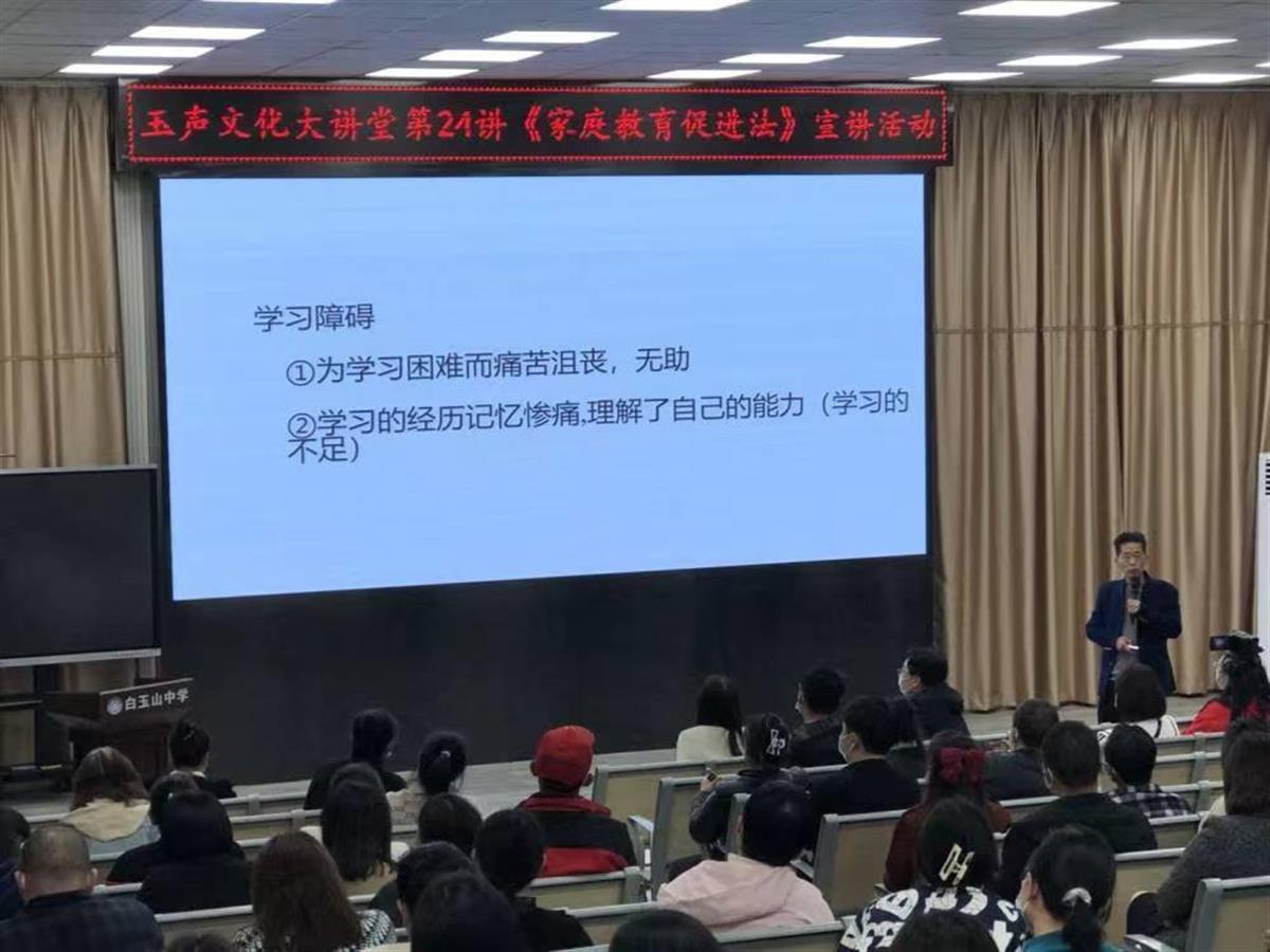 “你觉得自己是一个合格的家长吗?”“你觉得自己哪些方面需要改进?”一系列的访谈发问让在座的家长陷入了思考。这是武汉市白玉山中学文化大讲堂第24讲《家庭教育促进法》宣讲学习会场上发生的一幕。
