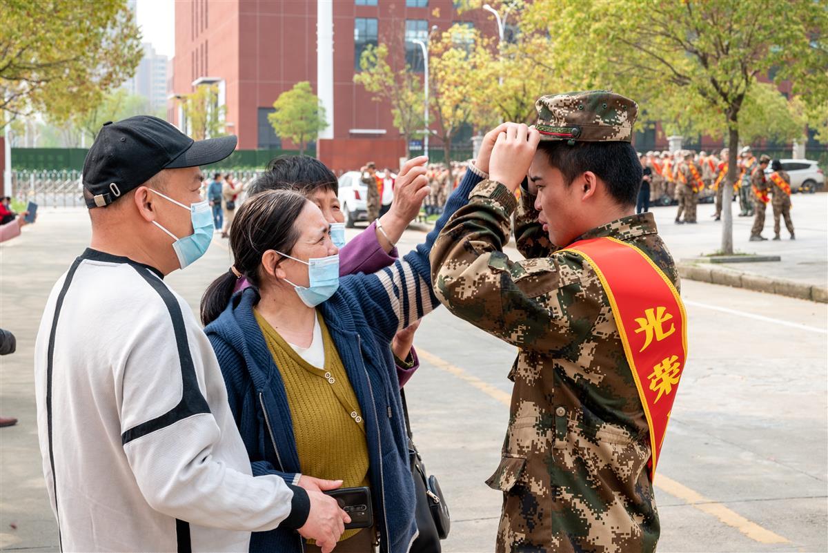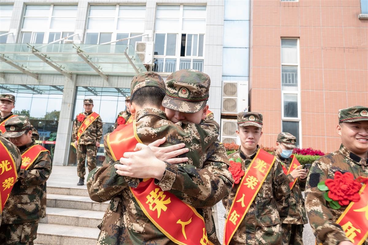 该校2020级计网士官(4)班范闯的父亲从头一天晚上9点从山东济宁出发,坐了11个小时的火车到达武汉,赶着参加孩子的入伍欢送会。范先生说:“临别之际,特别不舍,但是孩子总要成长,我希望他去了部队以后好好表现,练就过硬的本领,不辜负学校和家长的期望。”