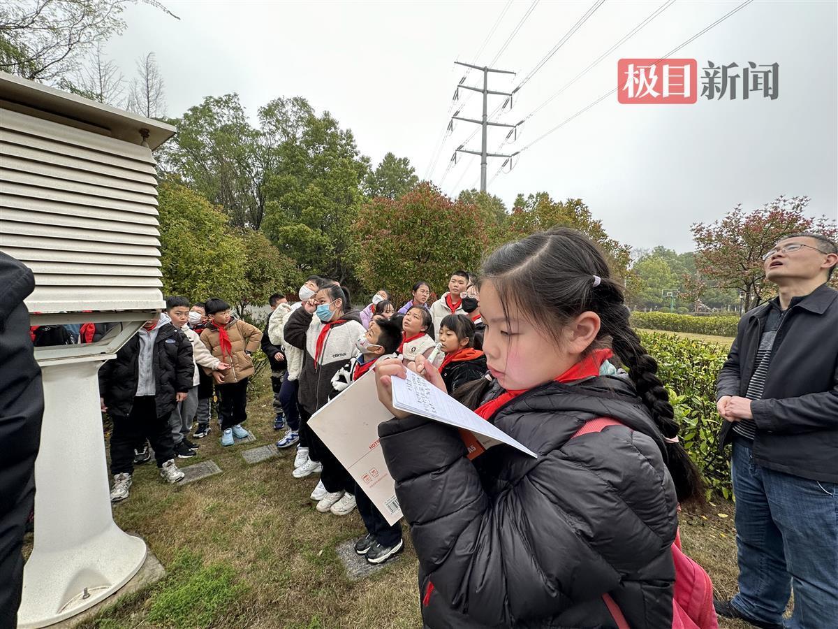 六年级学生胡紫渊和工程师一起观察了电子温度计和10米高的测风标,他认为包罗万象的气象知识十分有趣。“气象观测是需要十分细心的工作,未来我也想从事相关的工作。”胡紫渊说。