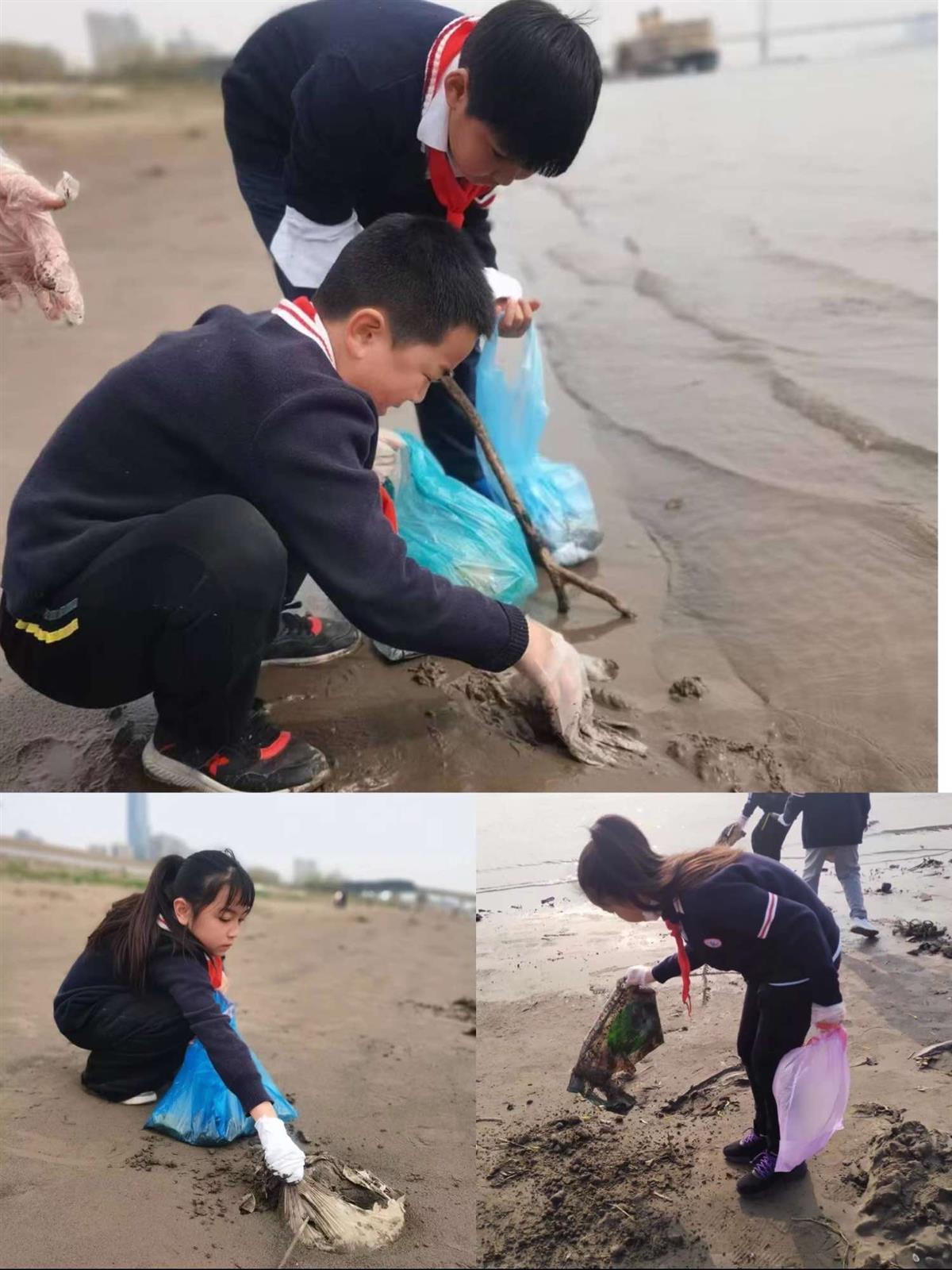 “天气这么好,一起到江边清理垃圾吧!”四(1)班的熊蔚萌、邓卓扬、苏哲等8名同学周末在家长的带领下,来到长江边进行了一场“护江行动”。迎着初升的太阳,孩子和家长们身披霞光,手拿垃圾袋,沿着江边的沙滩一路寻找,塑料袋、空饮料瓶、破气球......各种各样的垃圾都是他们的“战利品”。