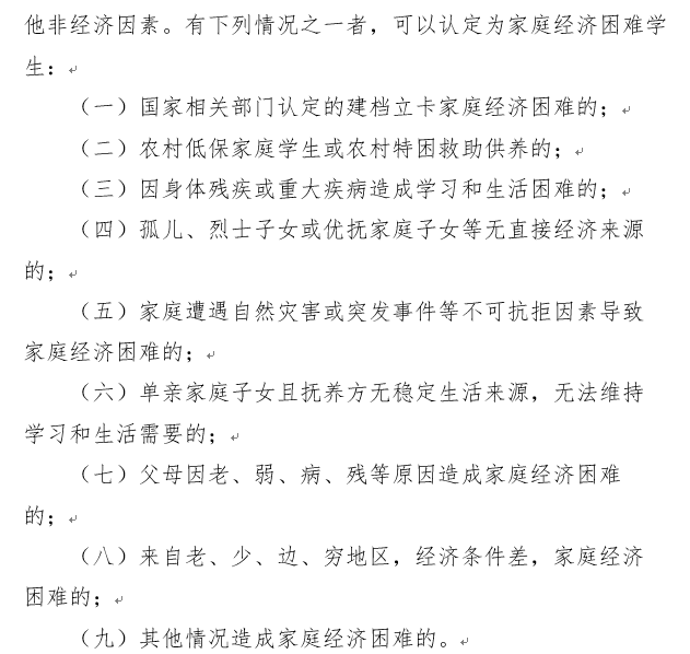 湖南科技大学资助办工作人员向潮新闻记者介绍,根据《湖南省家庭经济困难学生认定工作实施办法》,学校也出台了相应的资助办法。在《湖南科技大学家庭经济困难学生资助办法(修订)》中,记者看到,除了国家相关部门认定的建档立卡家庭经济困难的,孤儿、烈士子女或家庭子女等无直接经济来源的;单亲家庭子女且五洋房无稳定生活来源的;来自老、少、边、穷地区等情况者都可被认定为家庭经济困难学生。