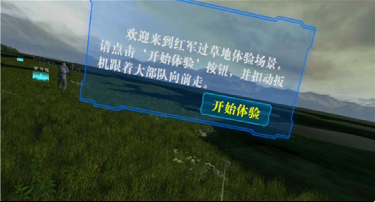 3月17日,极目新闻记者现场体验了湖科职的VR思政课。通过操控遥控器,戴上VR一体机就进入了“虚拟世界”。屏幕正前方出现了7个不同的课程主题。记者随机进入“长征精神”章节,点击“开始体验”后,映入眼帘的便是一望无际的草地,不远处还有几名红军艰难地搀扶着战友前行。左右晃动VR一体机,还可以观察到周遭的环境状况。走过沼泽地时,有“陷入”的感觉,攀爬雪山时,会“哐”地一声突然滑落。
