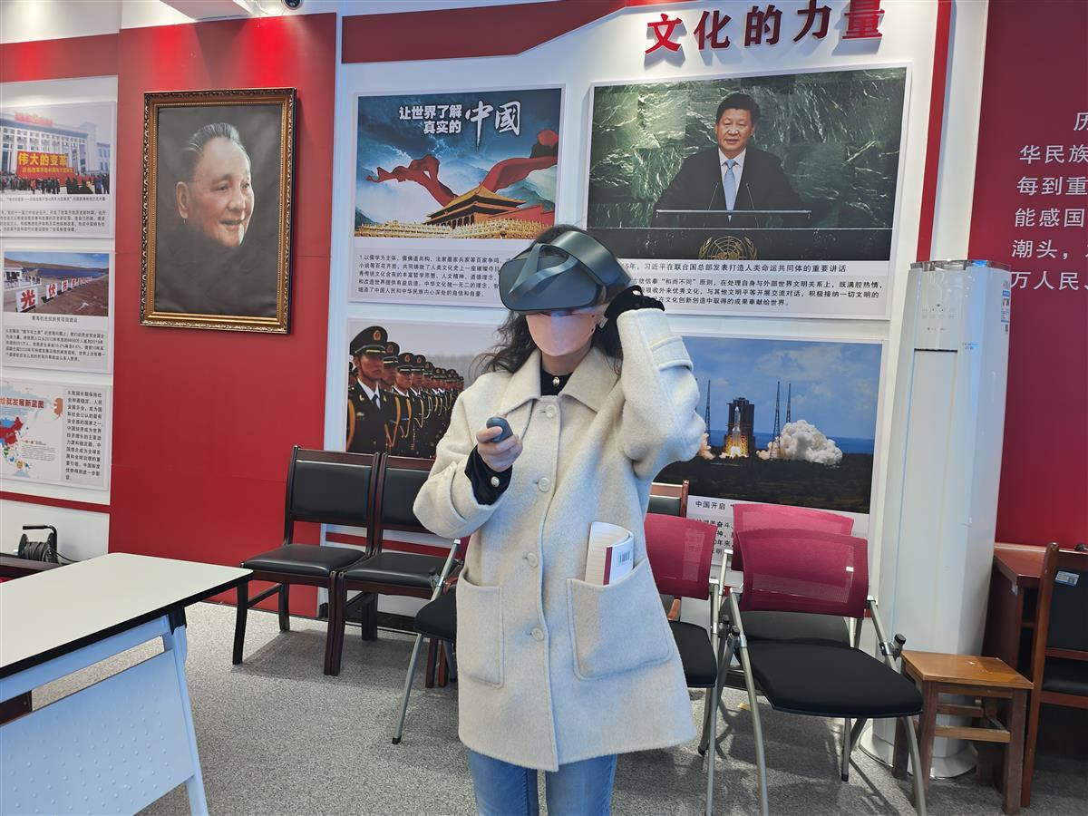 湖科职马克思主义学院副院长胡继慧向记者介绍道,该思政课堂利用VR技术沉浸感、交互性强的特点,为学生创设仿真的学习环境,打造可交互、沉浸式的三维学习环境,力求让学生实现感情共鸣。