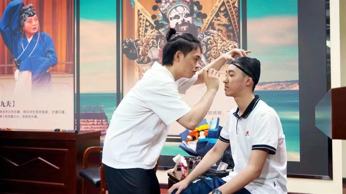 “汉剧有‘一末、二净、三生、四旦、五丑、六外、七小、八贴、九夫、十杂’十大行当。”活动伊始,王晓璐身着戏服、手拿道具,详细讲解了汉剧十大行当的特点,戏剧中的艺术化动作与人物生活的联系,并表演了一段汉剧经典《打花鼓》的“踩盘子”选段,引得现场掌声频频,不少同学跃跃欲试。