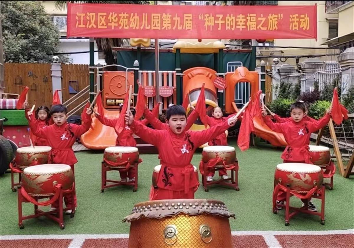 “春天暖风吹,燕子翩翩飞。小种子有梦想,出发排好队……”3月28日上午,在武汉市江汉区华苑幼儿园操场上,萌娃们身着古朴淡雅的汉服,边唱边跳,开启一年一届的“种子的幸福之旅”活动。