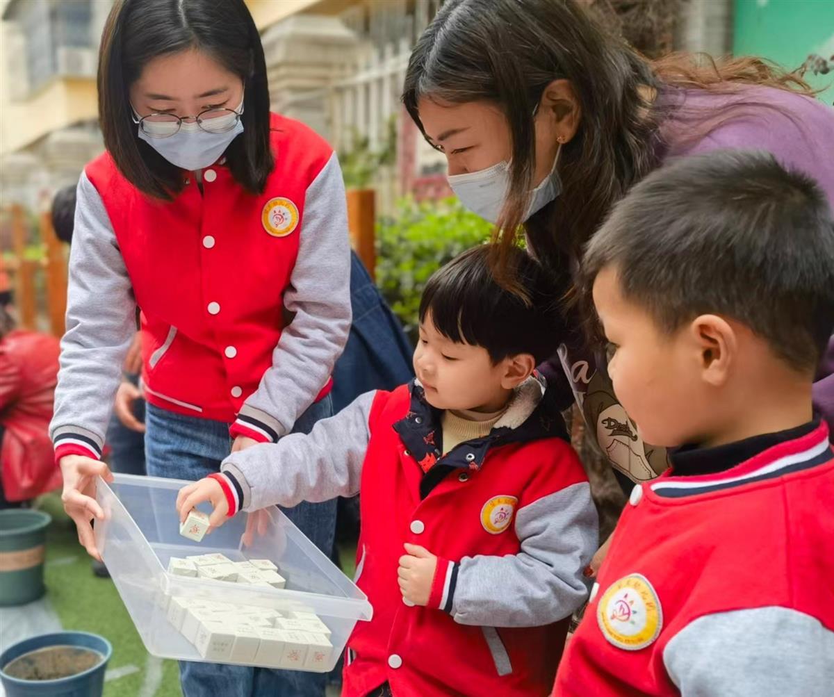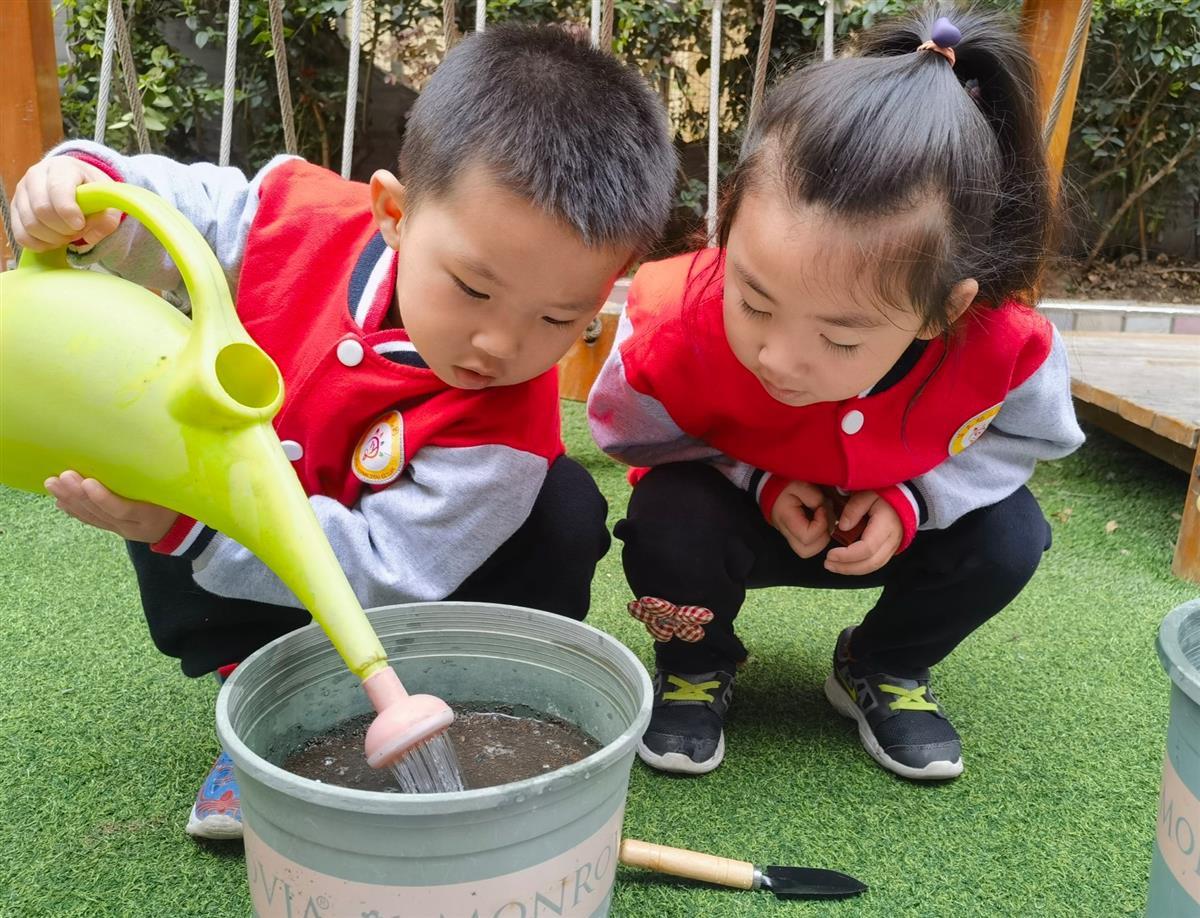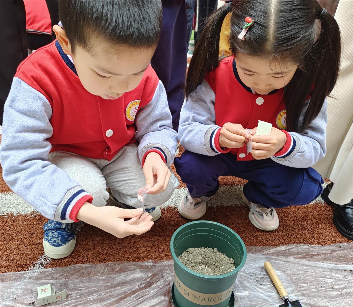 萌娃们或在家长的帮助下,或独立自主地拿起小铲子,轻轻在花盆土中挖上一个小洞,稚嫩地小手将种子小心翼翼地放入盆中,随后盖土、浇水。“多浇水勤施肥,一天盼一回……”萌娃们哼着《春耕舞》的小曲,期待着属于自己的那颗种子快快长大。