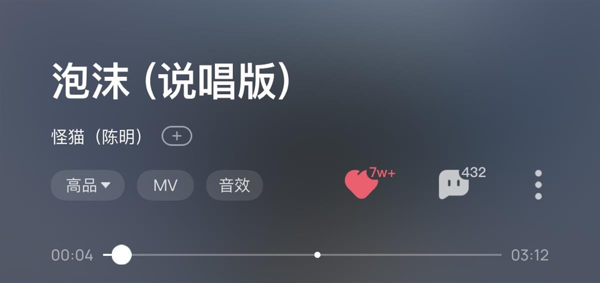 陈明翻唱的歌曲《泡沫》收藏量破7万人次