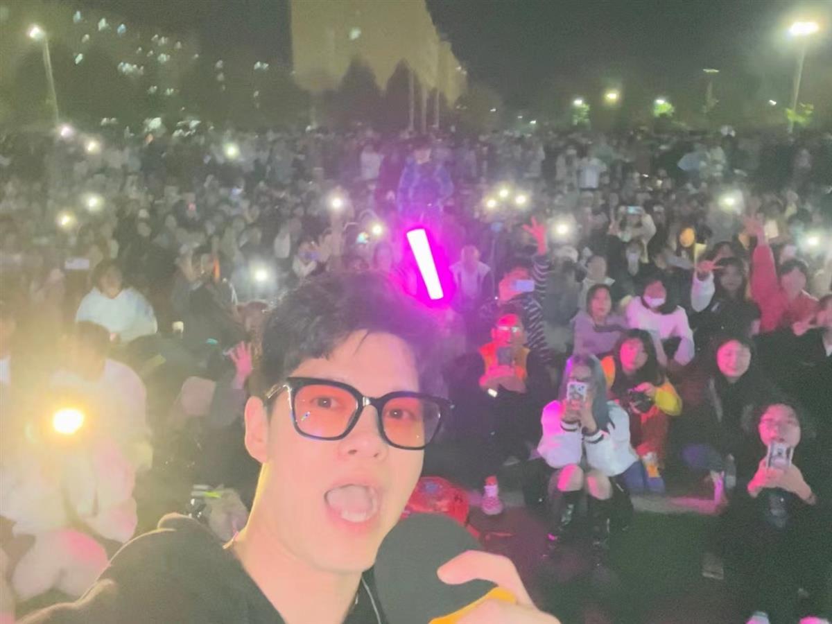 “懵懂无知自作聪明的少年,精心打扮大步向前……”歌声从学院草坪live舞台上传来,陈明正在演唱原创歌曲《闹钟》。3月26日的草坪live是陈明最后一次参加学院举办的音乐节活动。多次参加音乐节的他,从大一的青涩到大四的游刃有余,每一次都有不同的感受,他说:“对于表演来说,可能每一场自己的状态和歌曲氛围都是不同的,每一场现场表演积累的经验都是很宝贵的财富。”陈明很感谢学院能够给予他认可与支持,同时也很感谢现场观众的热情和现场工作人员的辛苦付出,他享受音乐带给他的获得感。