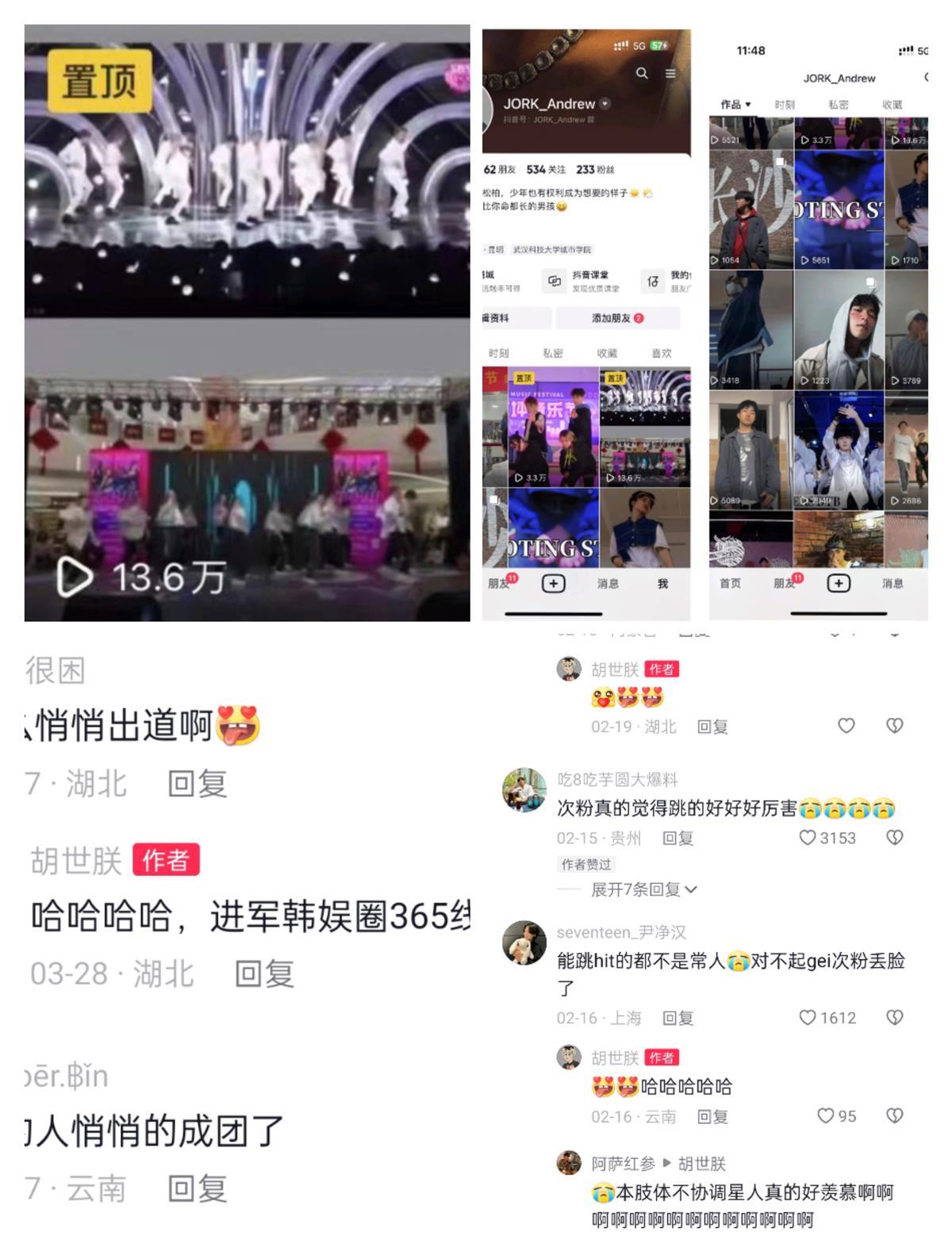“今天就是最闪亮的星。”4月4日,极目新闻记者从武汉城市学院获悉,日前该校外语学部2022级英语专业4班学生胡世朕一段K-POP比赛的短视频在他个人视频账号上“火了”。他的视频账号主要记录和分享练舞过程,其中街舞《HIT》的播放量高达13.6万人次,视频号总播放量达50万人次。