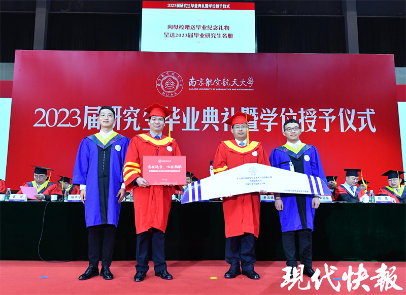 当天,同学们为母校准备了一份特别的礼物,由南航研究生团队自主研发的全地形垂直起降无人机和写满2023届全体毕业生名字的研究生名册,这饱含着毕业生对母校的感激,更有着对母校的承诺。