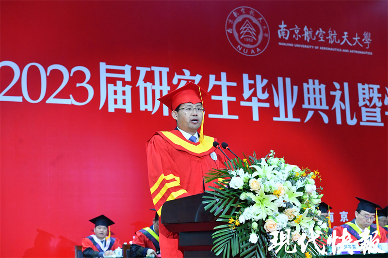 “在你们迈向人生新阶段、开启青春新征程之际,在你们启程远航之时,作为师长,我再叮嘱几句,与同学们共勉”,南京航空航天大学校长单忠德院士寄语毕业生,要厚植家国情怀,始终保持“心有大我、至诚报国”的历史自觉,争当肩负时代重任的复兴栋梁;要涵养进取品格,始终保持“勤勉敬业、志在超越”的优良传统,争当勇立时代潮头的中流砥柱;要矢志创新创造,始终保持“敢于斗争、敢于胜利”的意志品质,争当紧扣时代脉搏的强国先锋。