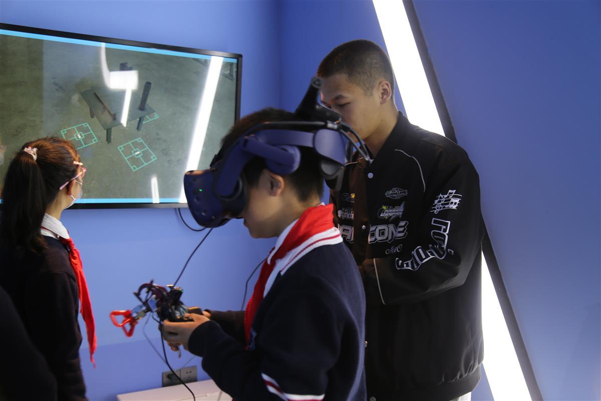 同学们在VR体验区