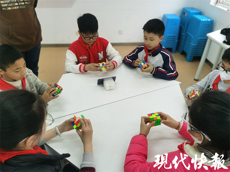 “近期学校专门聘请了WCA认证选手袁欢来校授课指导,准备借承办市级魔方比赛时将魔方馆修葺一新。可能很多孩子达不到钱梓豪这样的水平,以后也不会走上魔方职业道路,但看到魔方能给他们带来快乐,我们的付出就有意义。”吴闻俊说。