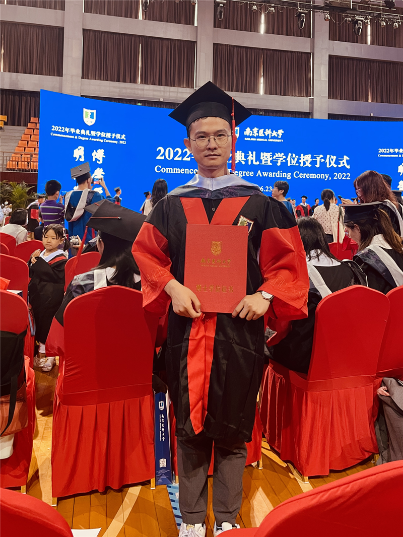 南京医科大学2022年毕业典礼暨学位授予仪式上,邱怀德被授予博士学位证书(受访者供图)