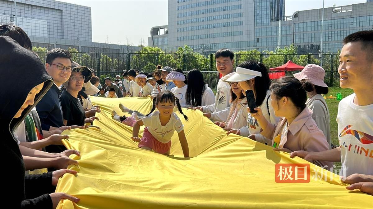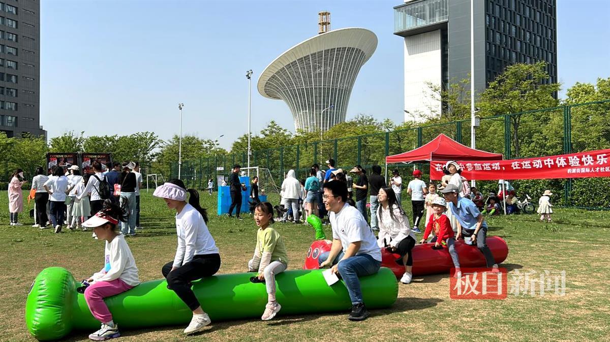 4月16日上午,在武汉光谷创新地标“马蹄莲”旁的未来足球公园内,来自东湖高新区豹澥街道国际人才社区的50组亲子家庭,在教练的带领下,一起参与社区举办的首届春季亲子趣味运动会,让孩子们在游戏中充分感受运动之乐、合作之美。