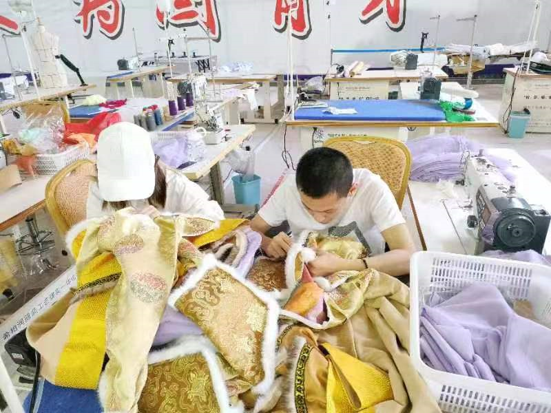 “风筝的服装设计创意性很强,服装的效果很夸张,在制作的过程中也遇到了很多的困难,比如说长达2米的龙头造型、长达一米的蝴蝶风筝造型、既能立体的展示,而且不会折断。我们用了各种板材,进行了多次实验,最终选择毛毡作为骨架,把面料黏在毛毡上,再一针针缝好。”服装与服饰专业的王兆红老师说。