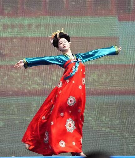 “历史文化秀的服装主要以秦、汉、唐、宋、元、明、清为时间轴。其中秦代以兵马俑为设计元素;汉代服饰以曲裾袍为主;唐代采用了唐三彩的色彩元素;宋代采用清明上河图的绘画元素,将传统元素和现代的服装设计相结合,将中国传统服饰进行了传承与创新。”服装与服饰专业的智绪燕说。