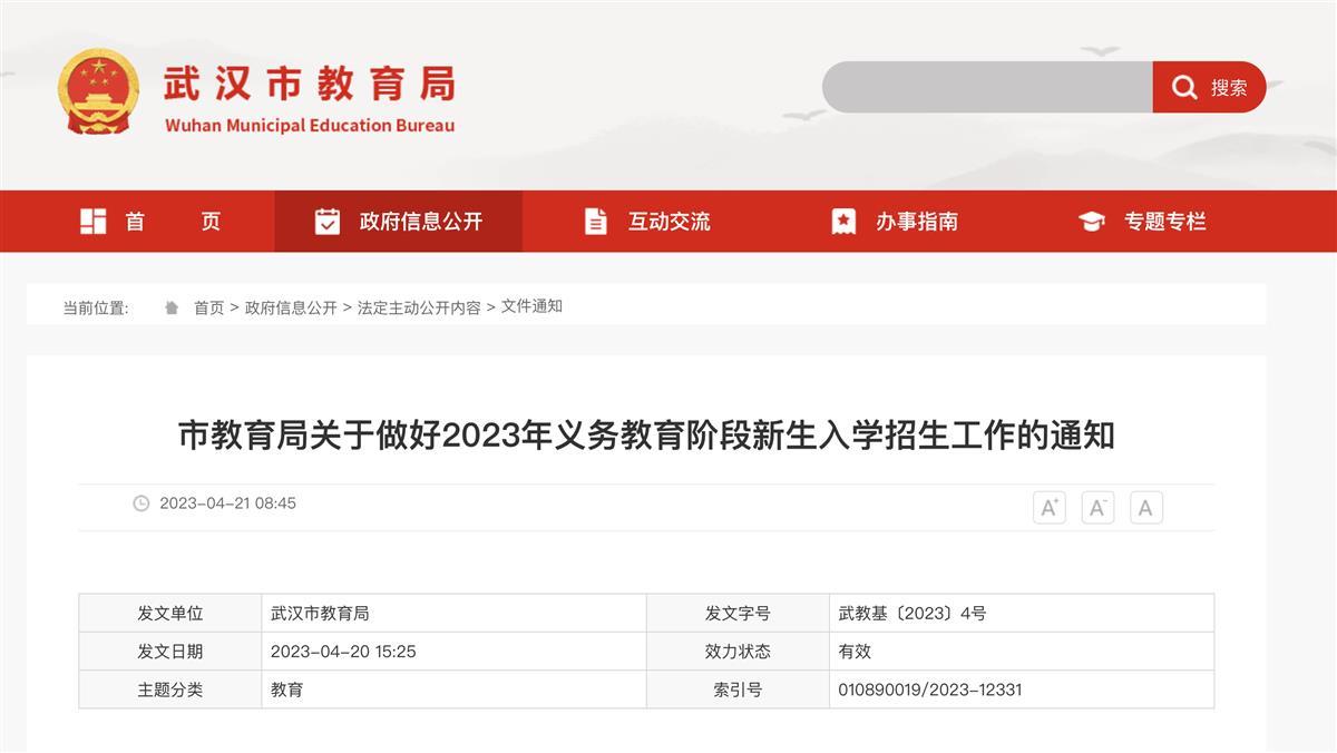 附:武汉市教育局关于做好2023年义务教育阶段新生入学招生工作的通知