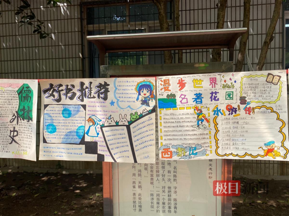 极目新闻记者注意到,华苑小学的校园里也张贴着诸多学生的优秀读书报告,展示着亲子共读的成果。据悉,自2018年起,华苑小学设计并推广了“亲子共读之悦心笔迹”,每周由两名学生家庭书写阅读笔记,通过家庭间的图书漂流,实现亲子和家庭间读书心得的交流学习。