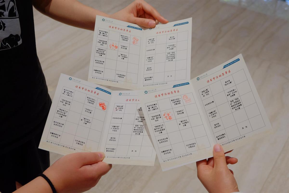 同时,“书海拾贝”寻书比赛、换书大集、猜灯谜等活动陆续开展。“这道题的答案是曹雪芹吗?”“我们快点去找书吧”……在场学生积极参与活动,争先收集读书节印章兑换奖品。