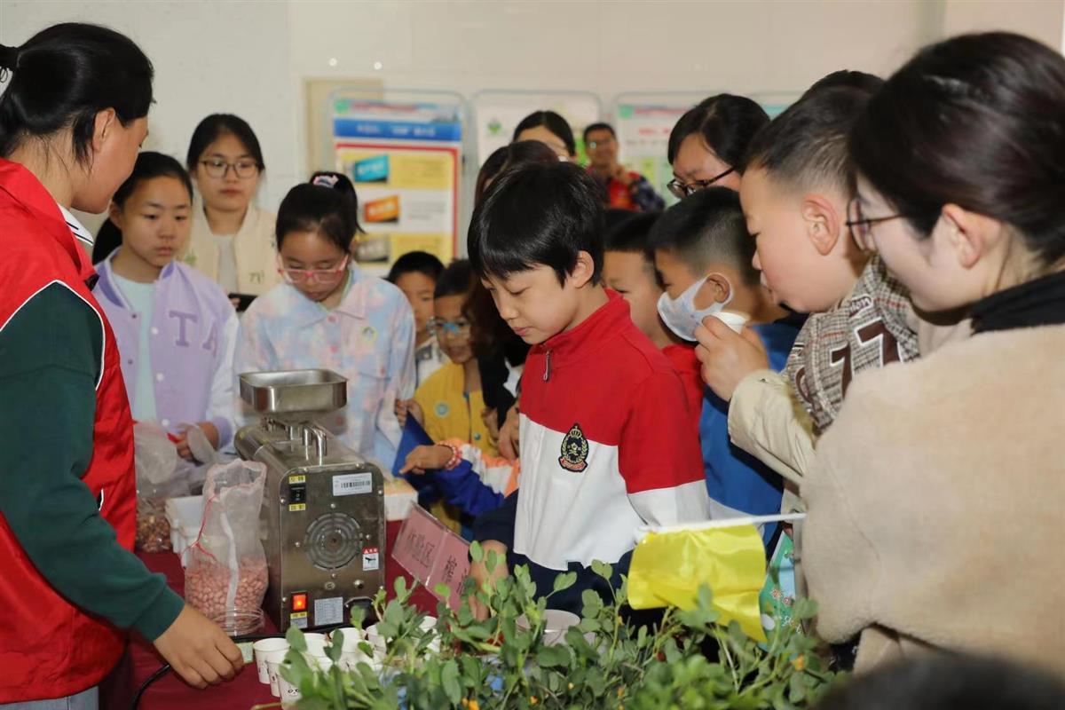 在种植区、豆浆品尝区、榨油体验区、种质展示区等多个展区,充满了小朋友们好奇的提问和志愿者详尽的回答。种质展示区摆放着花生、油菜、芝麻、向日葵、红花、蓖麻和苏子等55种油料作物种子,大小、形状和颜色各具特色。“市面上常见的花生是红皮和粉皮,我们今天展出的除了这两个颜色,还有红白皮、白皮,让市民朋友了解花生种子的多样性。”志愿者告诉记者。