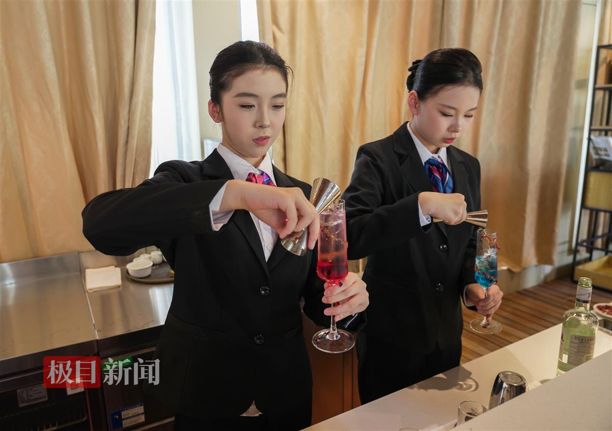 武汉市供销商业学校学生在练习调酒