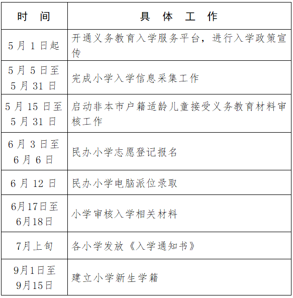 附件32023年顺义区小学入学工作日程安排