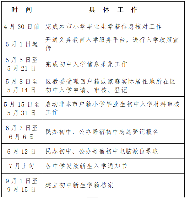 附件42023年顺义区初中入学工作日程安排