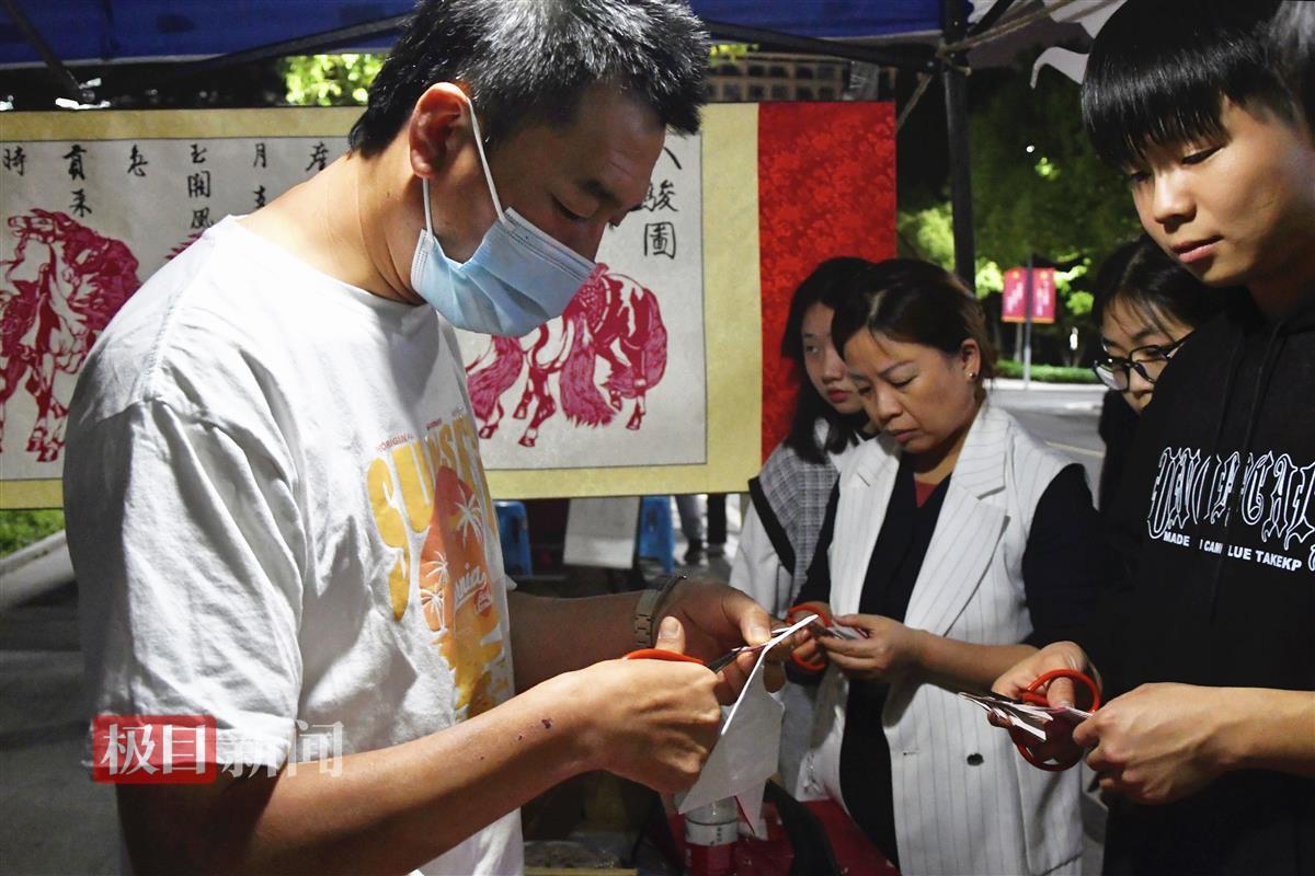 剪纸技艺展位也围满了学生,大家手握剪刀跟着金俊安老师学习剪纸,一张张平平无奇的彩纸变成了一朵朵梅花等各式图案,同学们沉浸其中,更乐在其中。金俊安表示,看到同学们对剪纸这么感兴趣,非常欣慰,优秀传统文化就应该由青年人传承和发扬下去。
