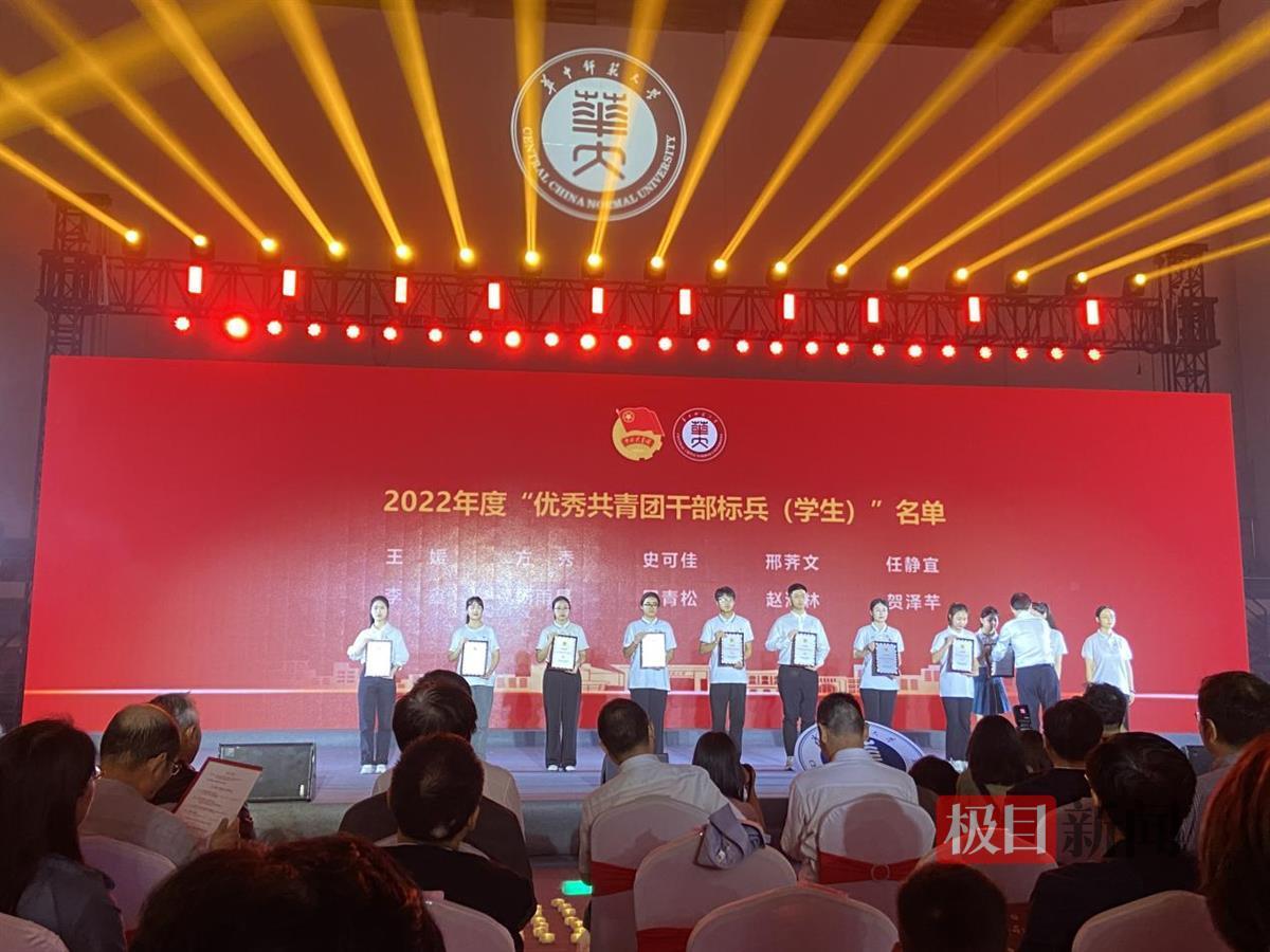 晚会现场还举行了颁奖仪式,共青团湖北省委副书记陈立为校团委颁发“全国五四红旗团委”奖牌。华中师范大学校党委书记夏立新、校长郝芳华、副校长李鸿飞、校党委副书记陈迪明为2022年度各级团学组织中涌现出的先进集体和个人进行颁奖。