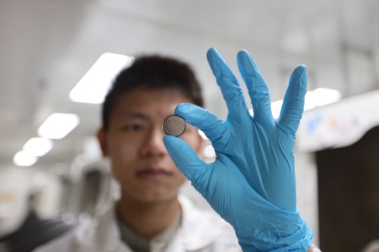 姚宏斌团队博士后殷逸臣展示实验成果。代蕊/摄