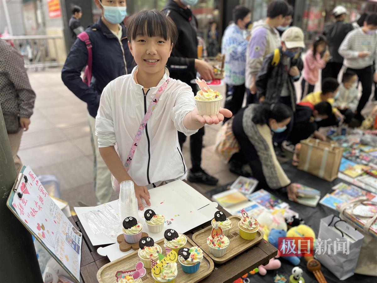 5月7日上午9时不到,水果湖步行街两侧成了该校学生们的各个摊点。手工美食、手工非遗、手工种植、手工工艺、书画作品以及发明创造等精美的实践成果,这些作品都是孩子们和家长利用五一假期共同劳动制作。在现场,有的学生负责招呼往来的顾客,有的负责扫码收费,还有“流动商家”带上自己的作品主动寻找购买者……一时间水果湖步行街人头攒动,热闹非凡。