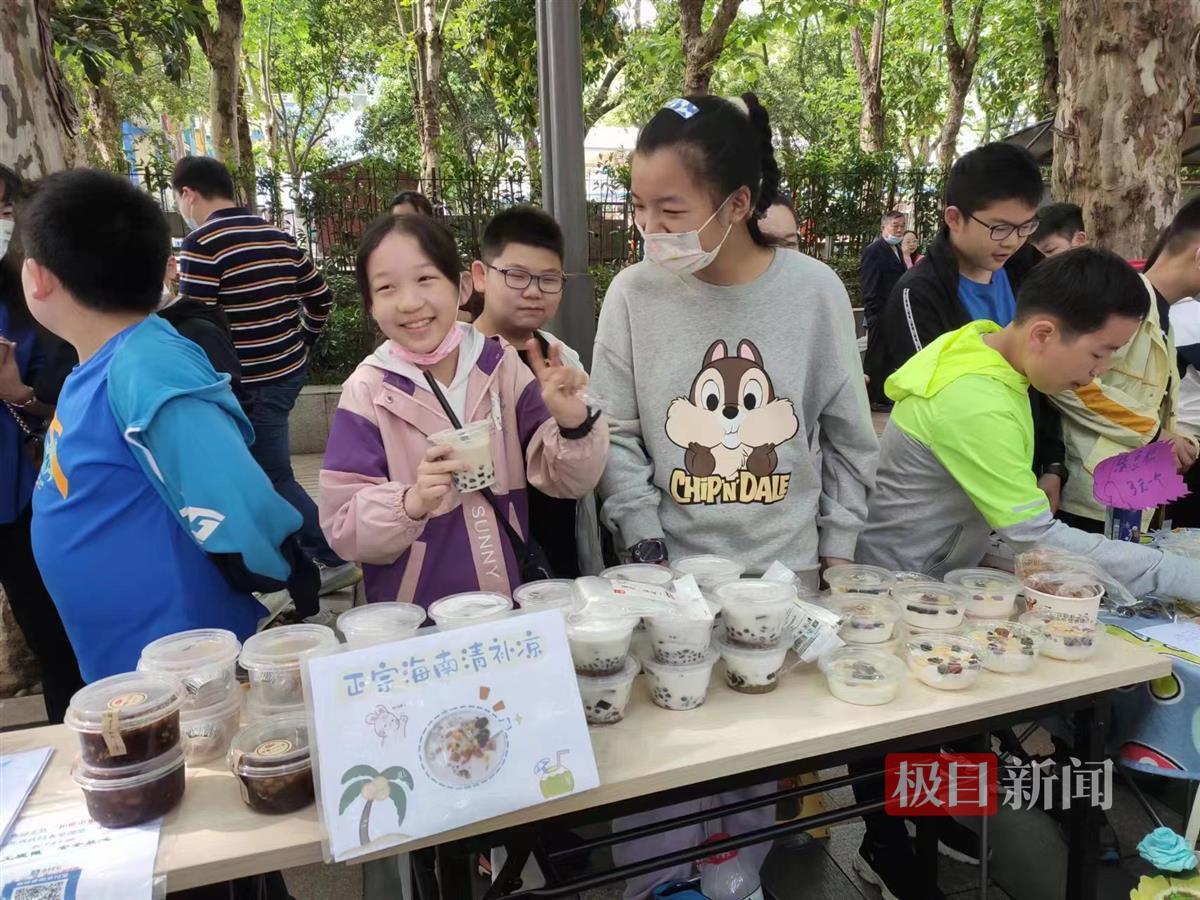 学生马悦萌做的美食和其他同学都不一样,从小在海南长大的她,想把海南的美味做给大家品尝,特意做了海南清补凉。为了保证味道正宗,特意拜托妈妈找朋友从海南买了一大堆新鲜原材料,在家反复试验,连续做了好几天。马悦萌告诉记者:“经过反复调试配方,终于做出了正宗海南的味道,我才敢拿到现场义卖。”