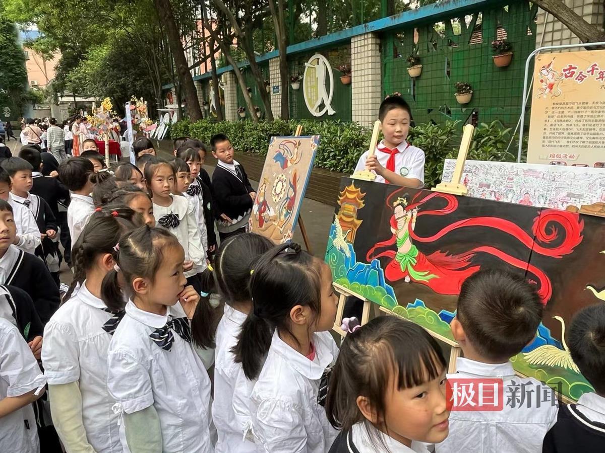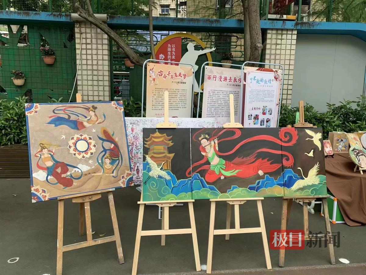 5月6日,武汉市江汉区卫星村小学在校园里举办了一场丝绸之路之“寻美丝路 梦圆敦煌”的主题课程展演,婀娜多姿的飞天形象、层层叠叠的藻井图案、复古逼真的泥版壁画、制作精美的珐琅掐丝……各式各样的作品吸引着全校学生驻足观看。