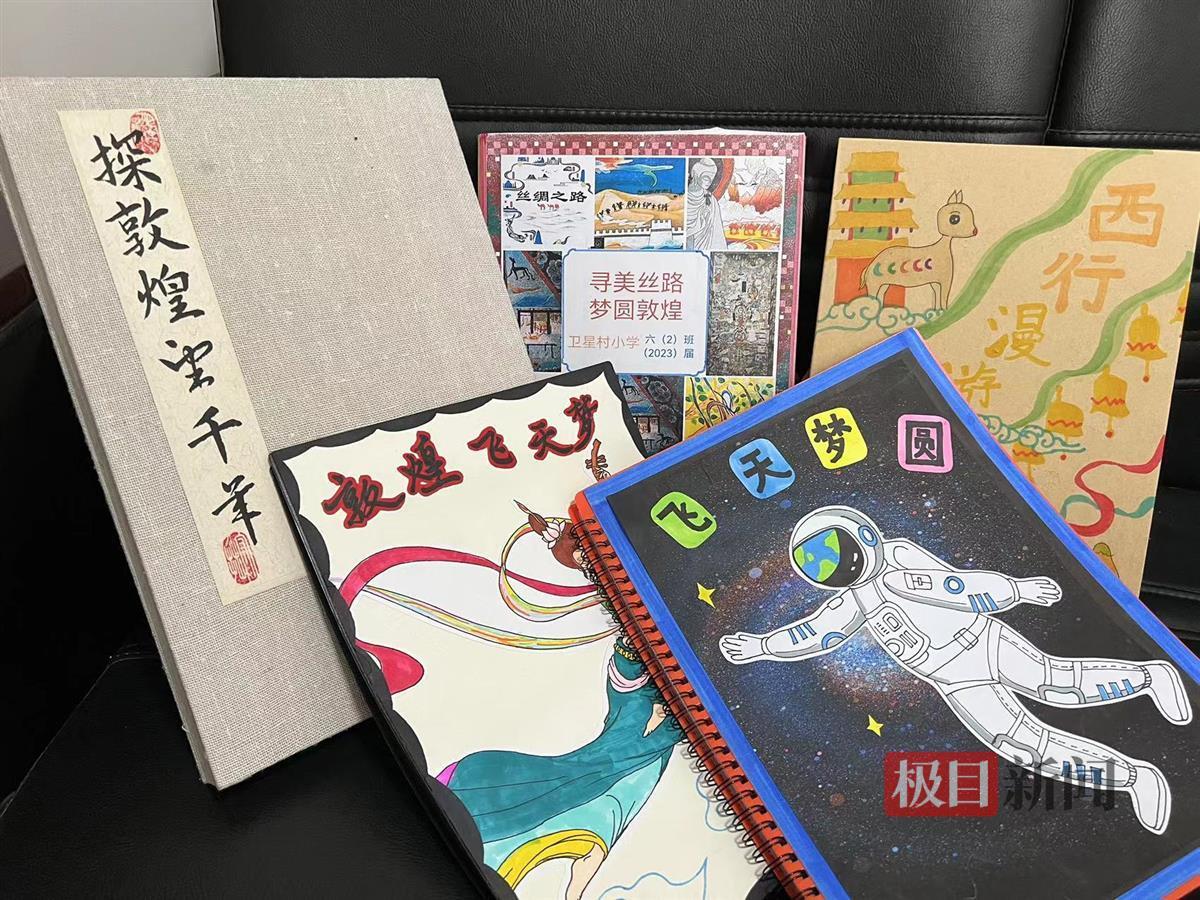 “原来敦煌莫高窟的‘一绝’——飞天壁画,经历了一千七百年的历史演变,它兴起十六国,延绵了晋朝、隋朝、唐代、五代十国、元朝等数十个朝代,真是太了不起!”卫星村小学六年级的全体同学围绕“寻美丝路 梦圆敦煌”开展了两个月的系列研究活动。活动期间,每一名同学都化身为研究员,围绕各自感兴趣的问题展开深度研究,最终以图文并茂的方式绘制了5本各具特色敦煌研究录:《探敦煌望千年》《寻美丝路敦煌诗集》《敦煌飞天梦》《飞天梦圆航天史》《西行漫游去敦煌旅行攻略》。