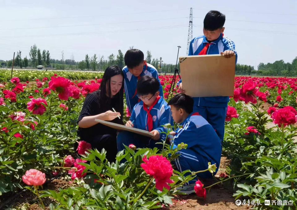 据了解,为了让学生们更好地了解家乡的芍药文化,与芍药花近距离接触,真实感受芍药的美,都司镇中小学开展芍药传情实践活动,把课堂搬进芍药园。学生们在老师的带领下徜徉芍药花海,尽情观赏明艳大气的花朵,抚触嫩绿的叶子,了解芍药的文化内涵、生长特点和价值,并通过画芍药、诵芍药等方式,培养学生对家乡和芍药的热爱之情。