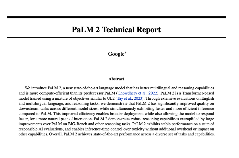 当天,谷歌一同发布了PaLM2技术报告(https://ai.google/static/documents/palm2techreport.pdf),整整91页。但是,PaLM2论文远没初代PaLM有诚意,和GPT-4一样,更像是技术报告。