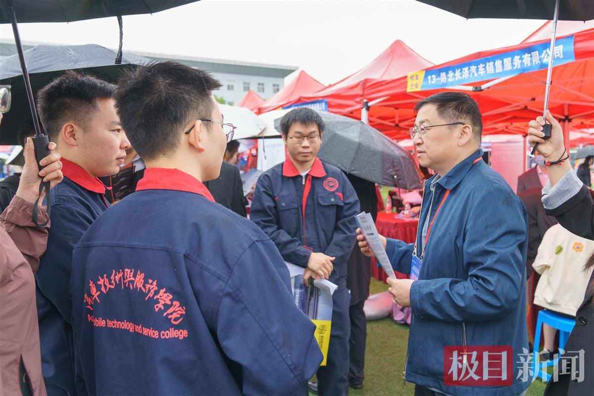 极目新闻记者在现场注意到,招聘会现场摆放了毕业生求职简历墙,分学校、专业展示有求职意愿的优秀毕业生风采,方便用人单位选才。通过毕业生自我推介增加供需双方对接精准度。同时,学生团队现场直播招聘会情况。设置直播机位,主播1到2名,邀请5家知名企业HR现场直播带岗,邀请10名毕业生通过直播自我推荐、分享求职经历等。此外,招聘会还设置了企业文化展示、学生就业赋能、就业政策宣讲和校企合作洽谈等功能区域,为毕业生求职提供有力保障。