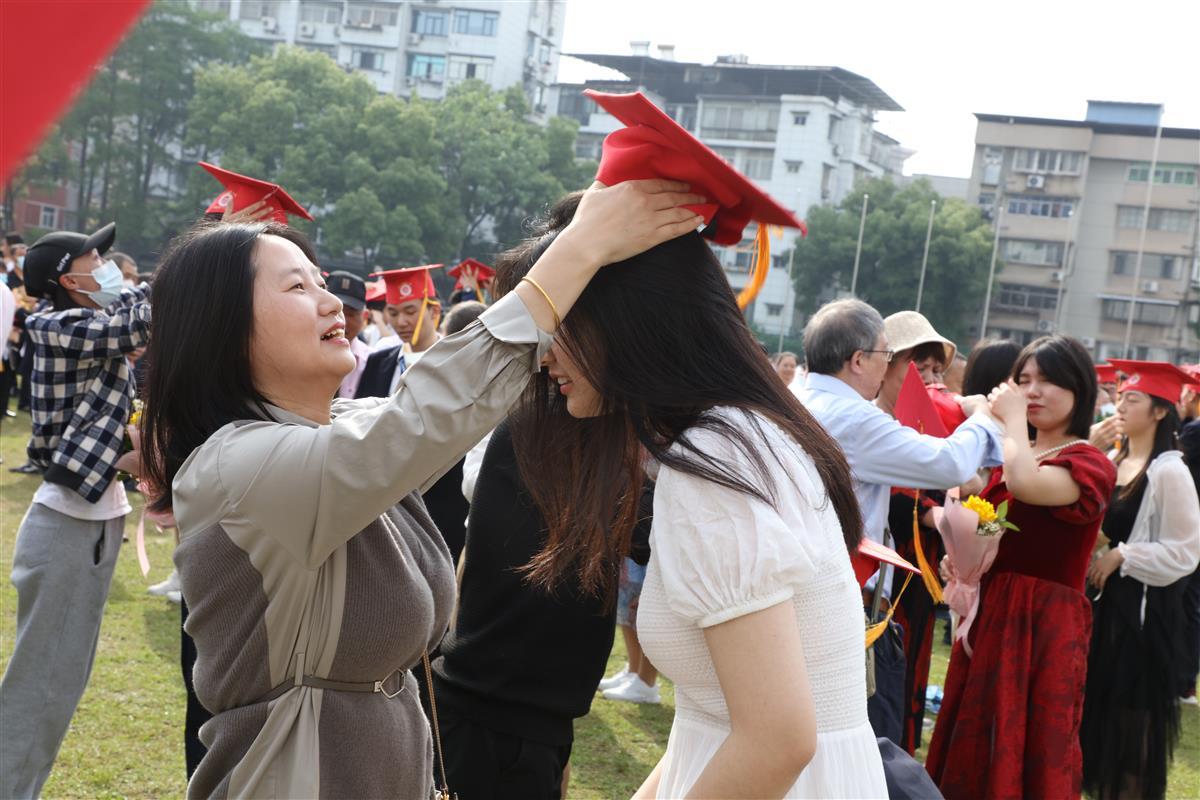 随后,全体高三学生对家长们用手语操演绎《感恩的心》,同时还赠成长家书,“行冠礼”,家长们则回馈了一个大大的拥抱。当各个班级代表将写给“20年后自己的一封信”装入时间胶囊后,学生和家长们一起跨过成人门。