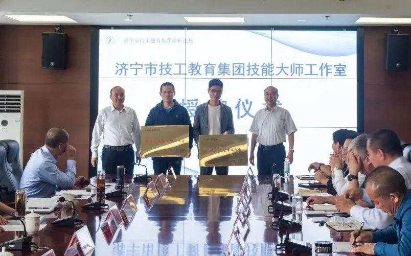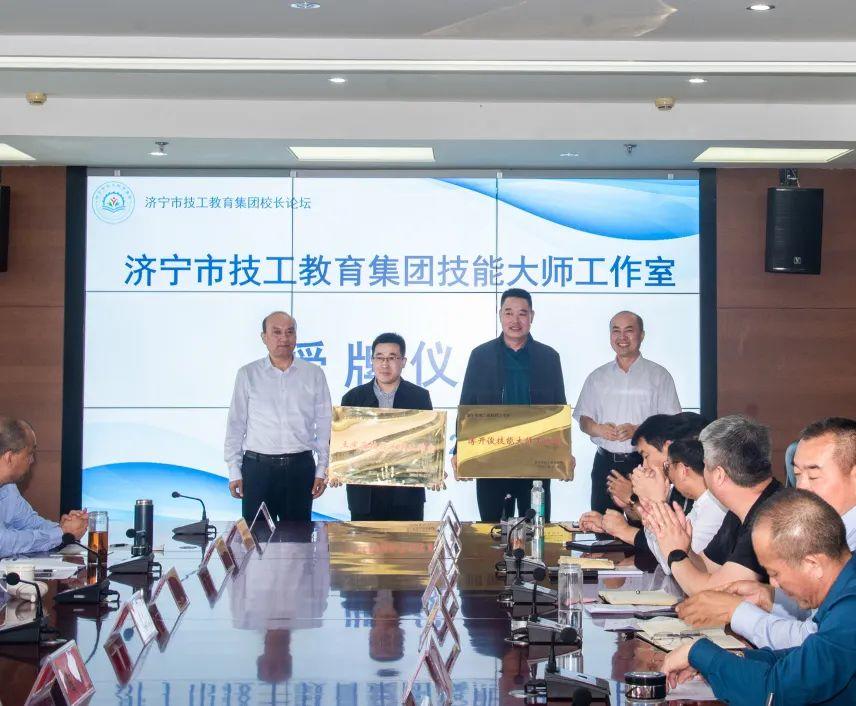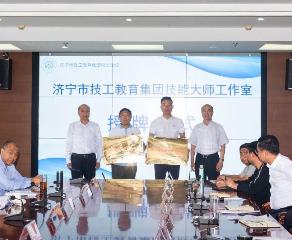 会上还举行了济宁市技工教育集团技能大师工作室授牌仪式,为市工业技师学院等单位的6位技能大师代表授牌。