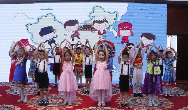 5月12日,“我是小小中国娃”爱国主义教育活动启动仪式在北京民族文化宫举行。仪式上,小朋友们表演节目。主办方供图