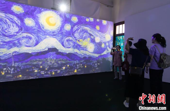 该馆运用AR、VR、AI等多种技术,开启观众与画作的触摸互动、识别互动。当观众走进展区,一簇多彩极光就自动出现,让观众带着它走进星夜。