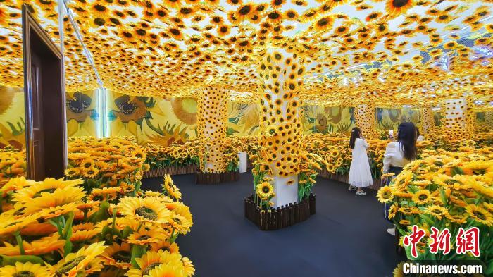 游客在“向日葵花海”房间拍照留念。 王在御摄
